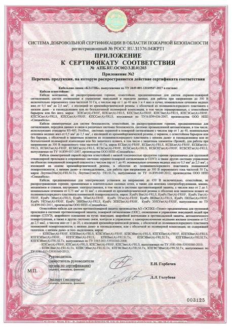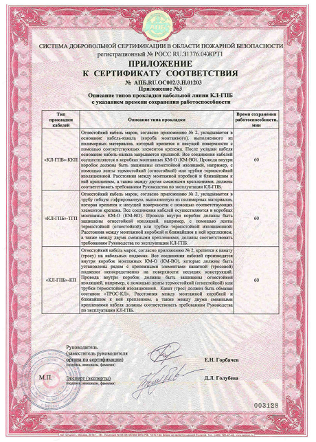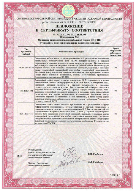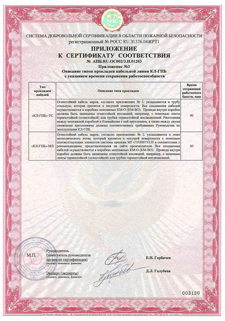 Сертификационными испытаниями подтверждено сохранение работоспособности до температуры 1020º С при напряжении 300 В (с учетом требований п.4.15 СП5 испытания проводились по ГОСТ Р 53316