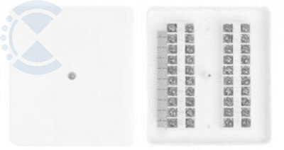 Коробка распределительная телефонная плоская на 2х10 пар проводов, 125х113х27мм. В комплекте перемычка на 10 контактов.