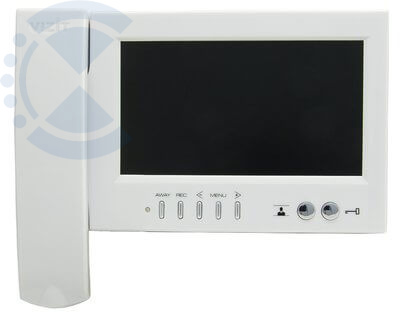 Двухканальный монитор цветного изображения (PAL, 7"). Энергонезависимая видеопамять (ч/б 250 кадров). Возможность подключения к монитору двух БВД, кнопки “Звонок” и дополнительного УКП. Интерком (внутренняя связь) между мониторами, подключёнными к блоку коммутации БКМ-443. Цвет корпуса - белый.