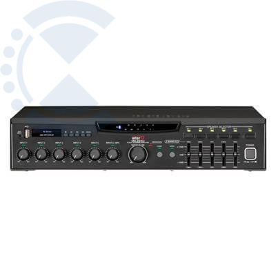 В устройстве предусмотрены 5 универсальных входов, линейный стереовход, линейный вход для подключения АТС, встроенный генератор сигналов `ГОНГ` и `СИРЕНА`, кнопочный селектор на 5 зон, 5-полосный эквалайзер, защита акустических систем от постоянного напряжения, светодиодный индикатор уровня выходного сигнала и срабатывания защиты. Первый и второй универсальные входы и вход для подключения АТС являются приоритетными.