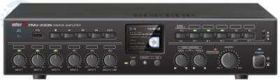 PMU-240N представляет собой микшер-усилитель со встроенным цифровым мультимедийным проигрывателем, который воспроизводит MP3/WMA/WAV аудиофайлы, используя расположенный на передней панели USB-порт. В устройстве предусмотрены 5 универсальных, 1 линейных вход, 2 USB разъёма (для подключения USB накопителя и компьютера), 2 линейных входа для внешних источников сигнала, линейный вход для подключения АТС, сетевой разъём Ethernet для подключения к потоковому вещанию по протоколам TCP/IP или RTSP, генератор сигнала `ГОНГ`, возможность удаленного управления выходным уровнем с помощью пульта VCA, 2-полосный эквалайзер. Первый микрофонный вход и вход для подключения АТС являются приоритетными.