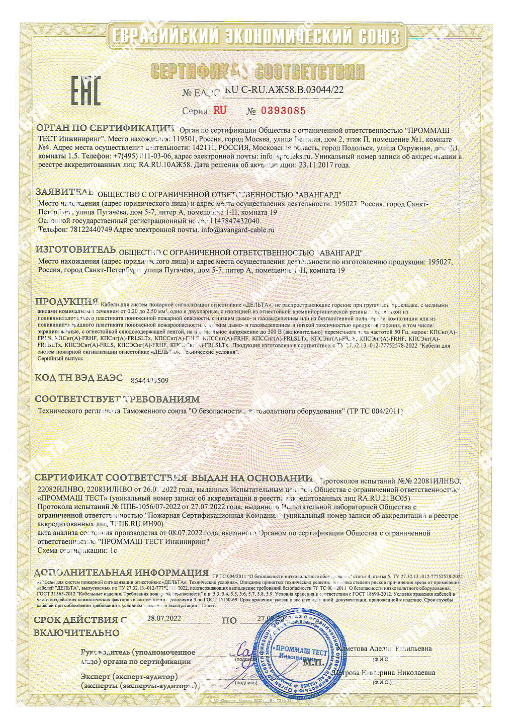 Кабель КПСЭнг(А)-FRLSLTх 2х2х0,5 Авангард купить в Перми в компании ВИПАКС.