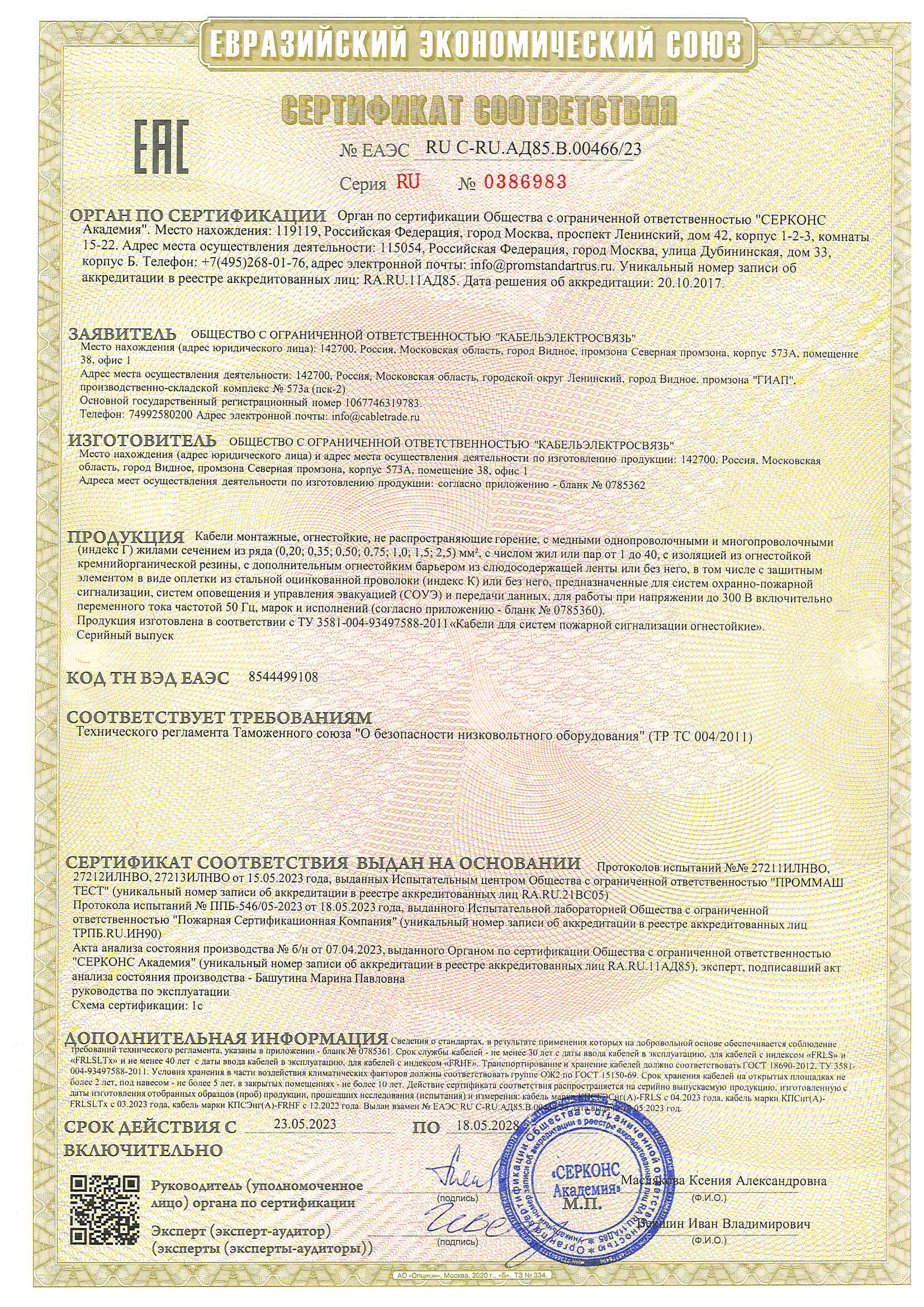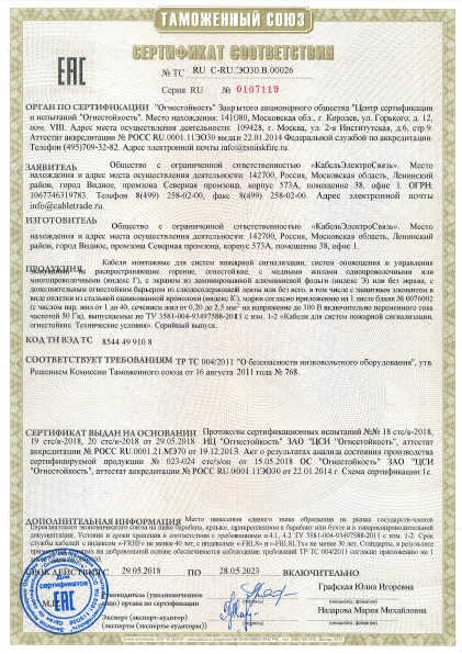 • Огнестойкий кабель предназначен для одиночной и групповой прокладки в системах противопожарной защиты, охранно-пожарной сигнализации (ОПС), оповещения и управления эвакуацией людей при пожаре (СОУЭ), аварийного оповещения на путях эвакуации, аварийной вентиляции и противодымной защиты, автоматического пожаротушения, а так же в зданиях, сооружениях и строениях, где предъявляются требования к кабелям и проводам по сохранению работоспособности в условиях пожара (ГОСТ 53315-2009)