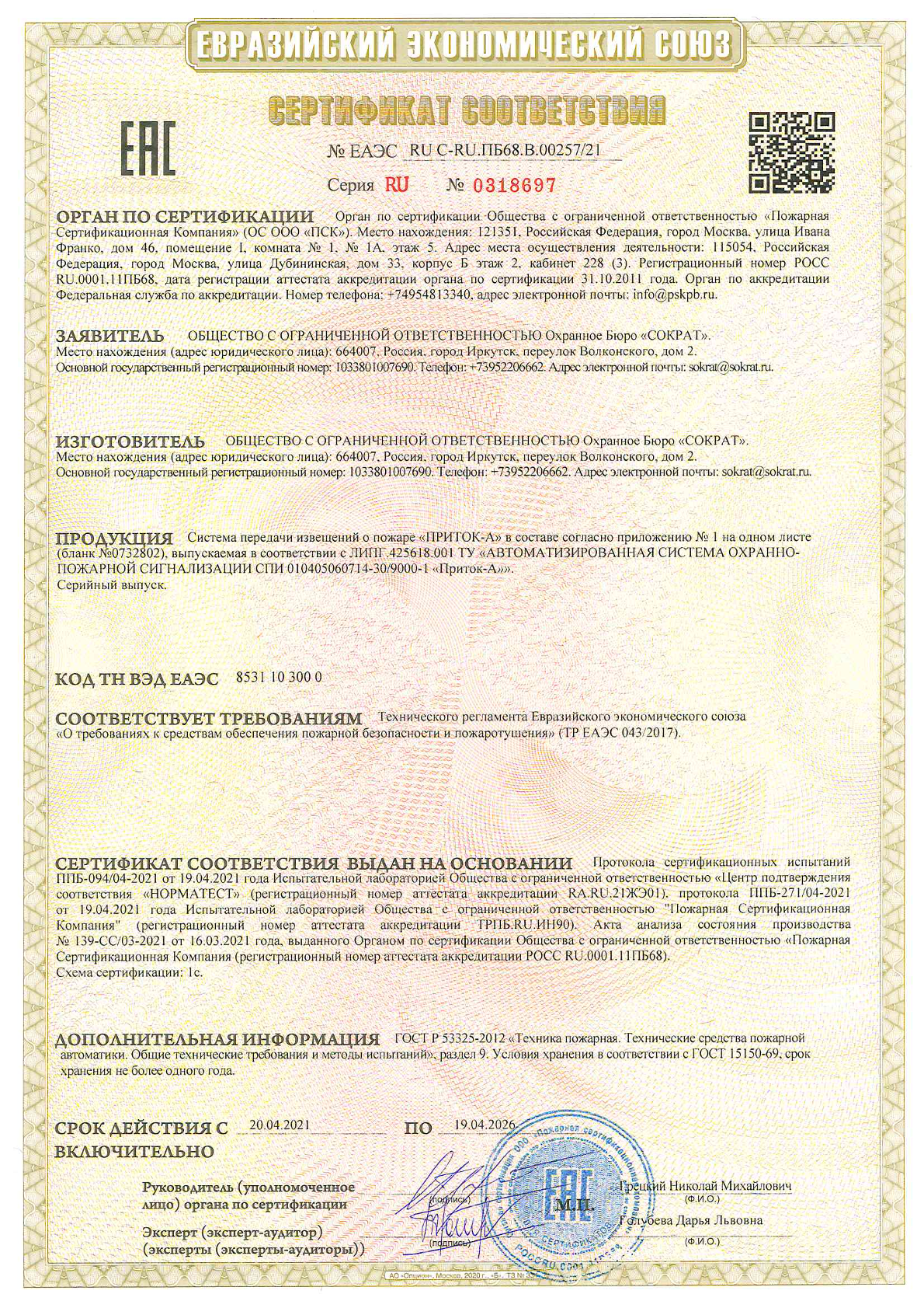 Контроллер Приток-А-КОП-02 охранно-пожарный Каналы связи с ПЦН-GSM, Ethernet Сократ в Перми