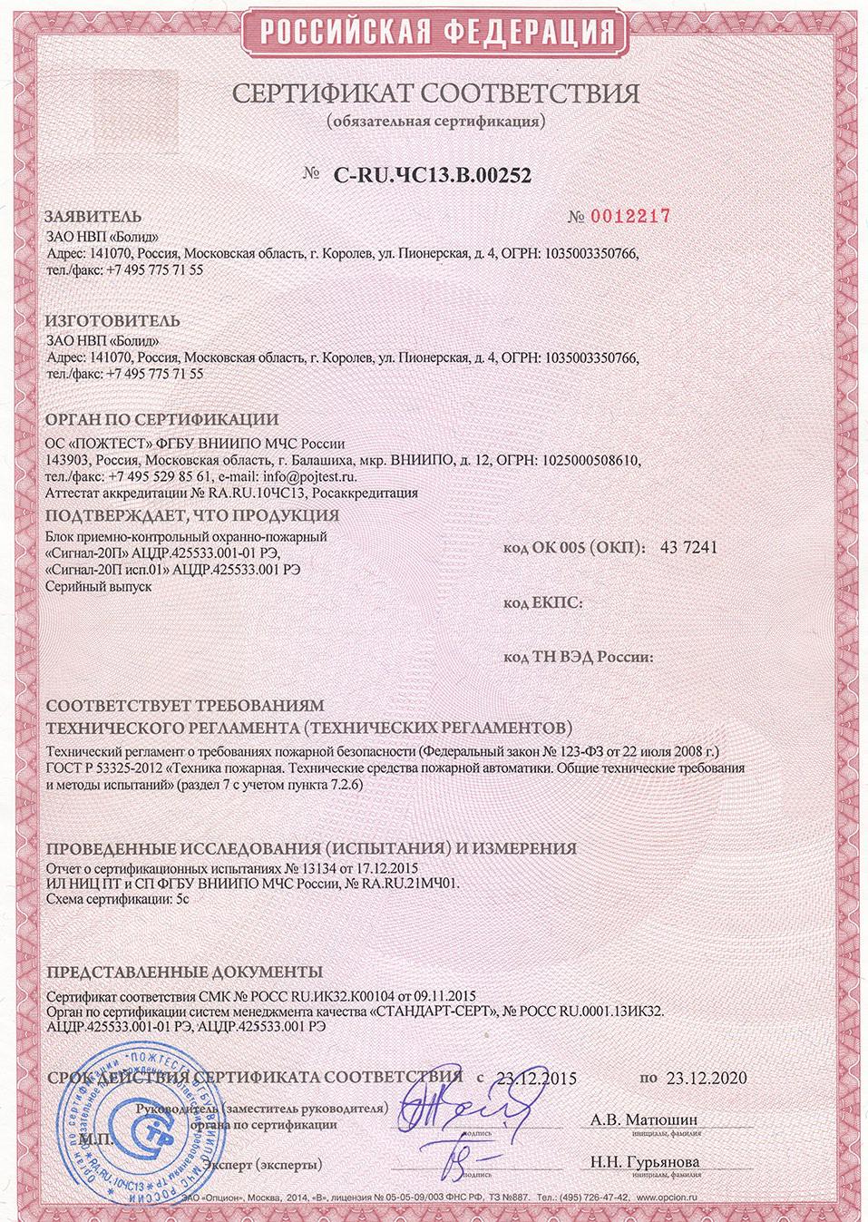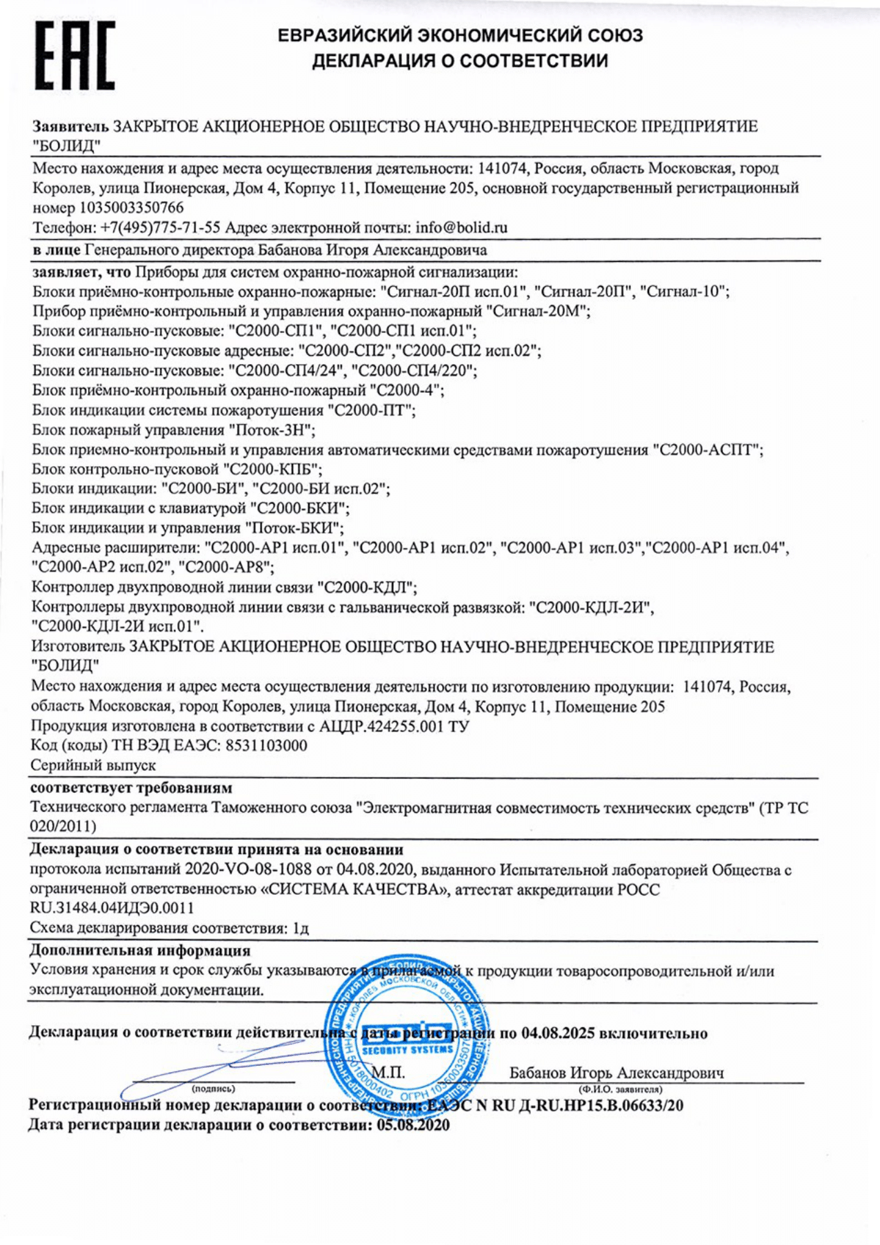 20 шлейфов сигнализации со всеми видами охранных и пожарных извещателей