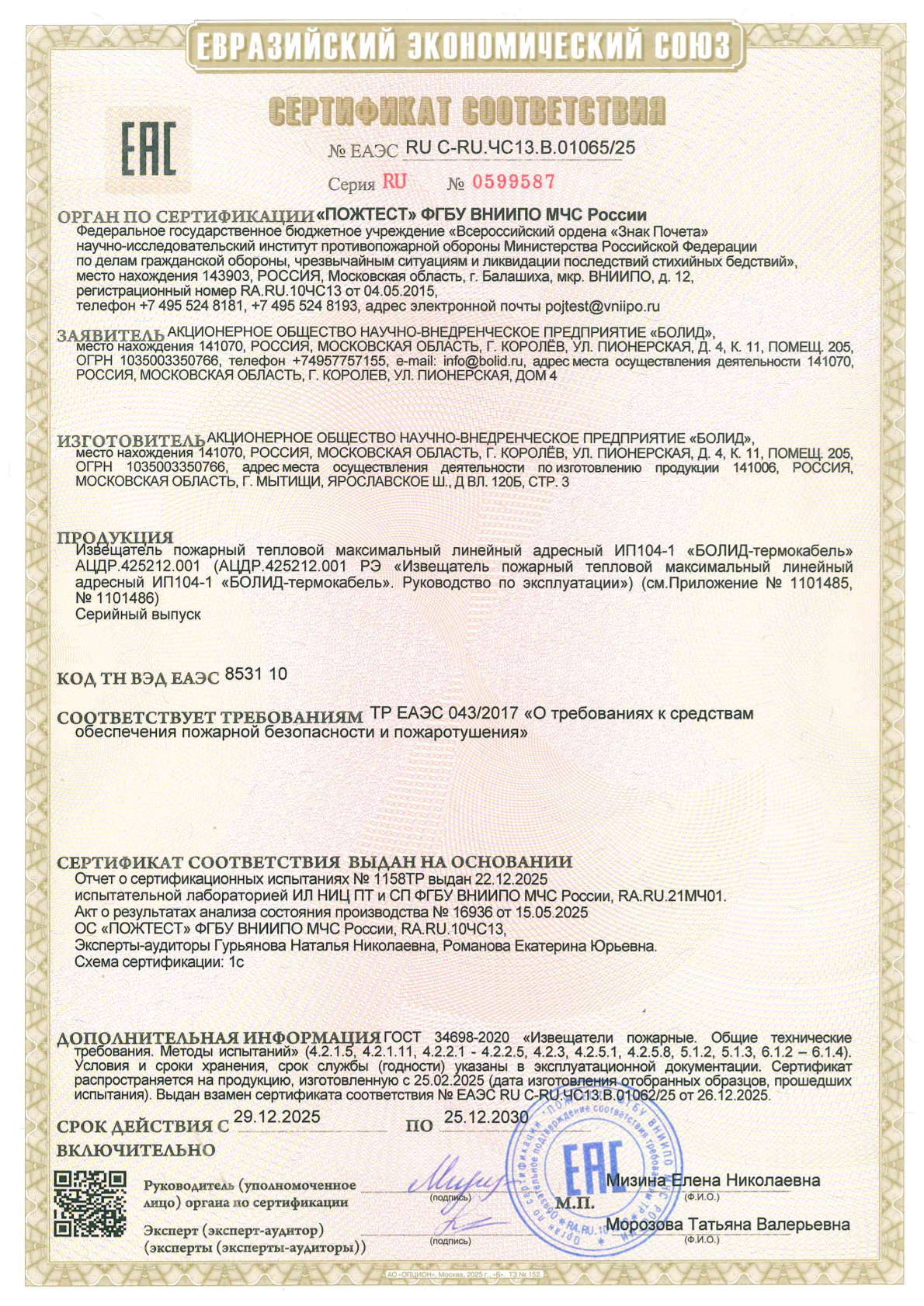 пожарный дымовой двухпороговый (с распознаванием сработки одного и двух извещателей в ШС)