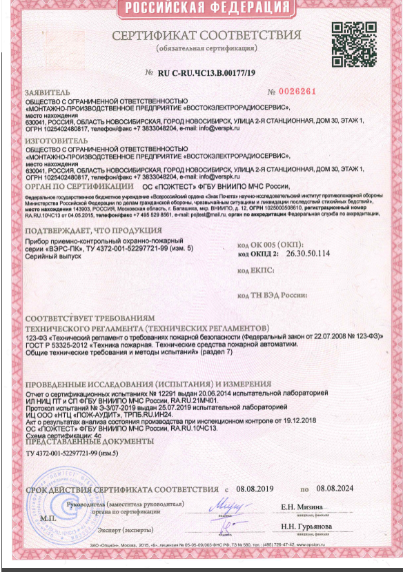 Прибор ВЭРС-ПК8 Версия 3.2, обеспечивает на объектах охрану от проникновения, пожарную охрану, контроль доступа, световое и звуковое оповещение. Прибор может быть использован как автономно, так и в составе централизованных систем охраны. ВЭРС-ПК-8 имеет высокоэффективный импульсный источник питания, поддерживает полноценную работу с глубоко разряженной АКБ. Прибор оснащен встроенным интерфейсом USB для загрузки и считывания конфигурации. ВЭРС-ПК-8 контролирует состояние шлейфов сигнализации (ШС) с подключенными к ним охранными, пожарными или технологическими извещателями. Устройство выполнено в пластмассовом корпусе.