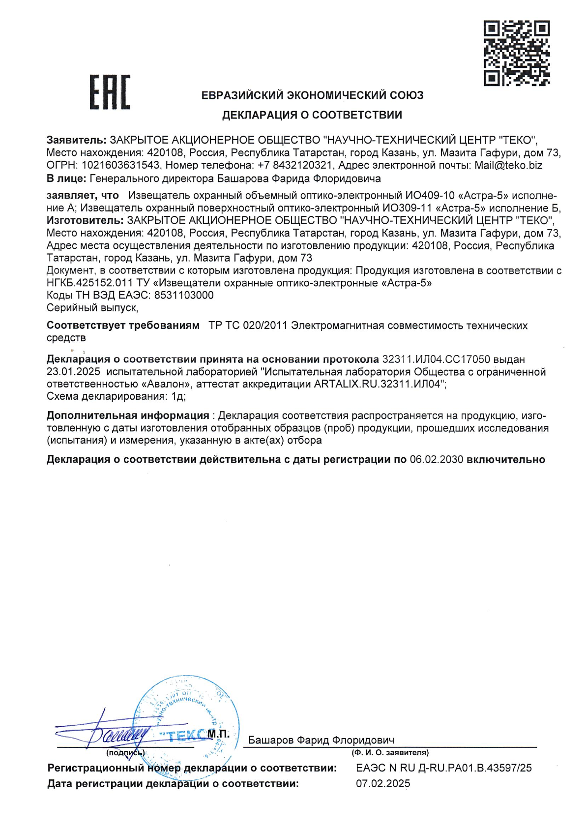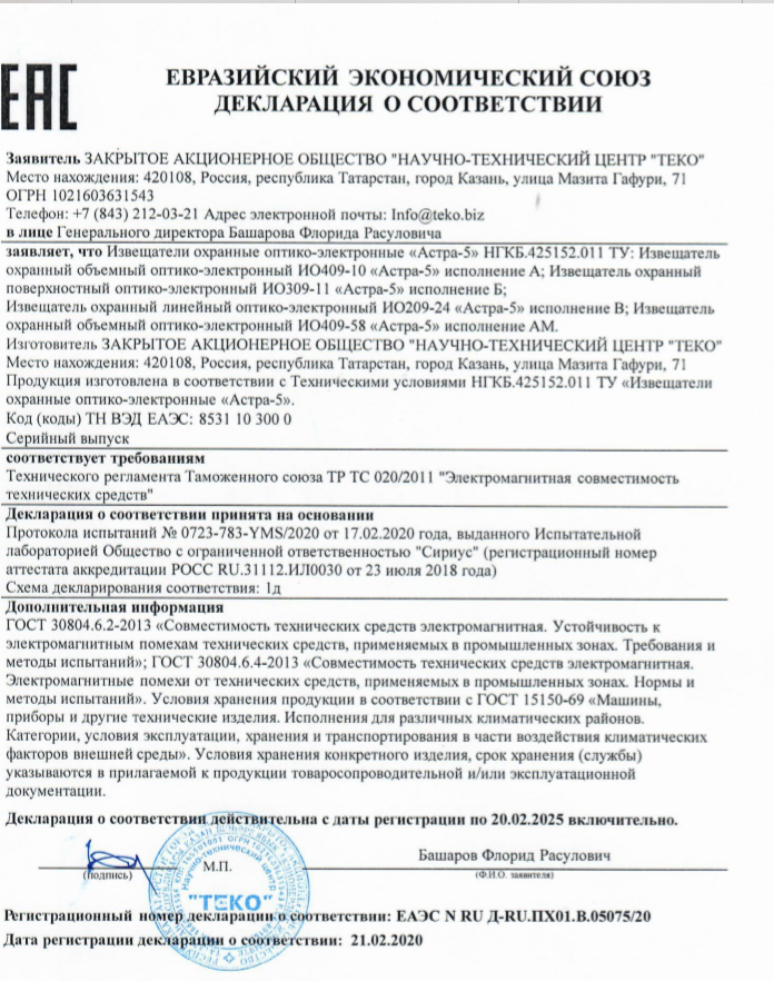 Предназначен для обнаружения проникновения в охраняемое пространство закрытого помещения и формирование извещения о тревоге путем размыкания выходных контактов сигнального реле.