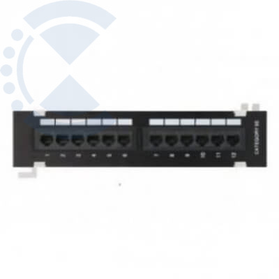 Патч-панель настенная; 1U; 12 портов RJ45/8P8C; Категория 5e; 110/KRONE; Неэкранированная; цвет черный.