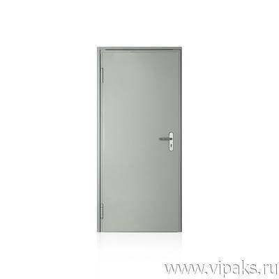 Дверь противопожарная одностворчатая, без остекления, левого открывания, предел огнестойкости EI 60 минут, покрытие порошковой краской серая шагрень RAL 7035.
