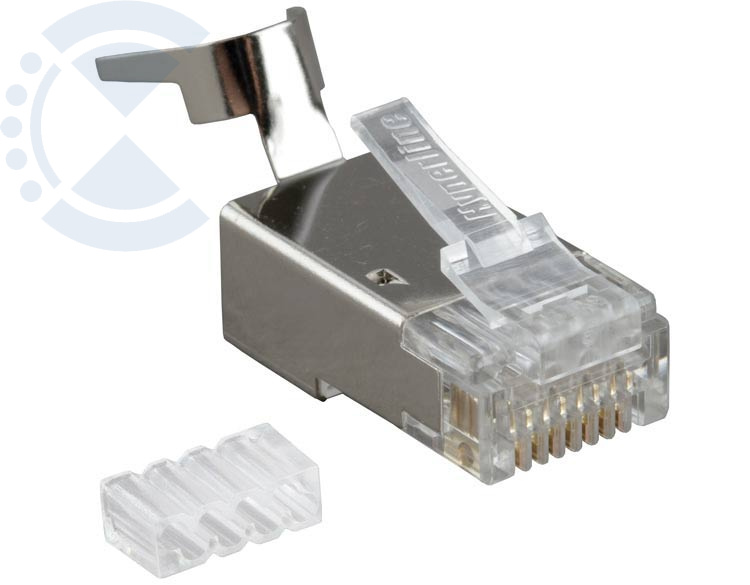 Hyperline PLUG-8P8C-UV-C6-TW-SH-10 Разъем RJ-45(8P8C) под витую пару, категория 6/6A (50 µ"/ 50 микродюймов), экранированный, универсальный (для одножильного и многожильного кабеля), для толстых жил 1.35-1.5 мм (с оболочкой), со вставкой, (10 шт)