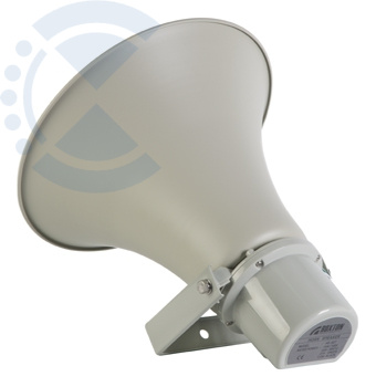 Рупорный громкоговоритель ROXTON HS-50T мощностью 50 Вт сочетает в себе хорошие акустические характеристики и удобство монтажа, что делает его незаменимым при построении систем речевого оповещения и музыкальной трансляции складов, вокзалов, парков и спортивных площадок. Выполненный из алюминия, громкоговоритель обеспечивает высокое звуковое давление вкупе с высокой направленностью звукового излучения. Громкоговоритель оборудован специальным П-образным металлический кронштейном, значительно облегчающим монтаж на различные поверхности. Встроенный трансформатор с отводами позволяет устанавливать значения мощности 25 или 50 Вт. Отличительными особенностями ROXTON HS-50T является высокая направленность излучения звуковых волн с максимальным углом раскрытия 90° на частоте 1кГц, а так же уличным исполнением с высокой степенью защиты IP66.