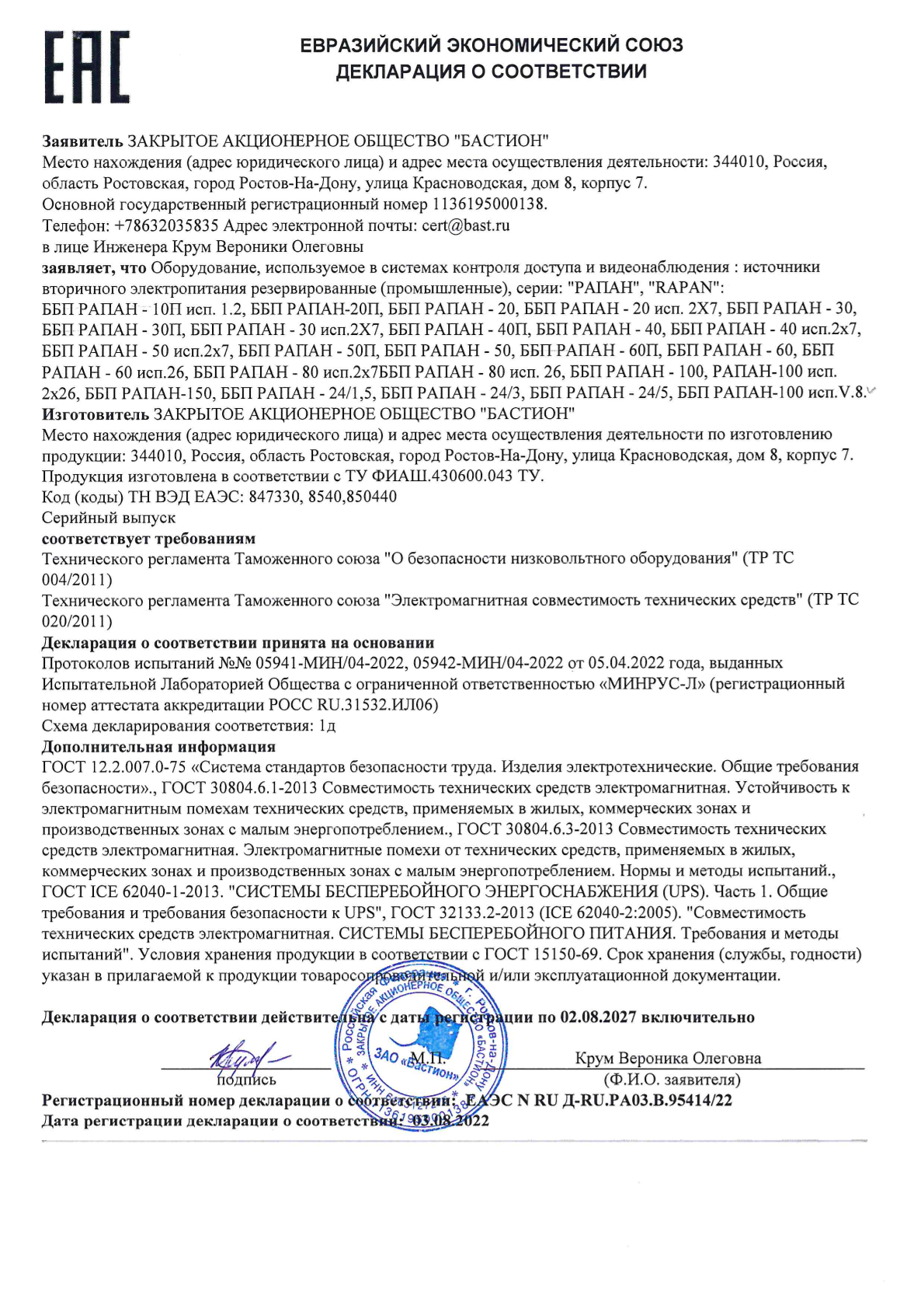 Величина пульсаций выходного напряжения при номинальном токе нагрузки, мВ, не более50