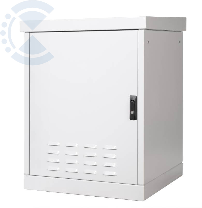 На дверь можно установить дополнительный антивандальный замок и полку для документов (в комплект поставки не входит). Вместо двери можно становить стенку (в комплект поставки не входит). Передняя дверь имеет жалюзи для обеспечения вентиляции. Крыша шкафа съёмная, имеет небольшой уклон и систему «антикапля», что не позволяет воде скапливаться на шкафу и отводит воду без попадания её на уплотнитель шкафа – дверь не примерзает в холодный период года. Под крышей имеются транспортировочные уши, которые позволяют поднимать шкаф на требуемую высоту либо транспортировать его с применением спец. устройств. Вместо стандартной крыши можно установить крышу с выдвижным козырьком (в комплект поставки не входит). Цоколь шкафа высотой 100мм, съёмный и может быть заменен на цоколь 250мм либо 500мм с окнами для доступа к проводам (в комплект поставки не входит). Фиксация шкафа к подготовленному основания осуществляется через 4 втулки М12 в основании шкафа.