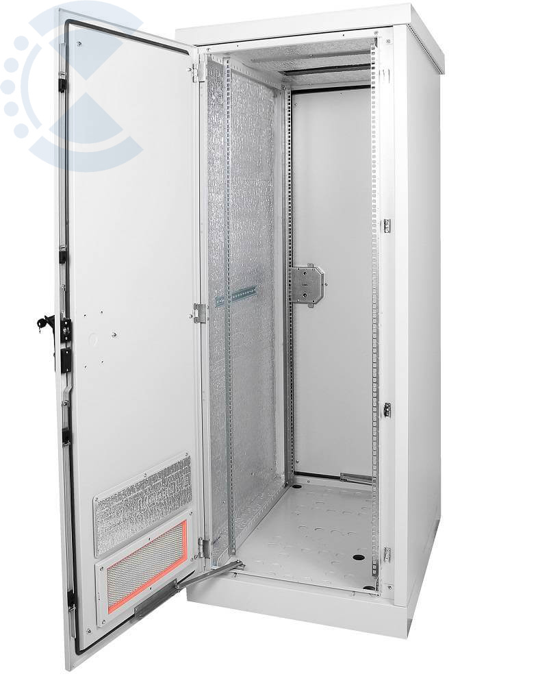 Шкаф изготовлен из листовой стали толщиной до 2мм., внутри покрыт термоизоляционным материалом. В комплект поставки входит утеплитель, который необходимо наклеить на основание внутри каркаса после прокладки проводов. В крыше каркаса и на передней двери предусмотрены вентиляционные окна, которые могут быть закрыты заглушками либо в них могут быть установлены фильтры и вентиляторы серии МВ-400-х. Двери выполнены из стали 2мм, могут быть перевешены для изменения стороны открытия.
