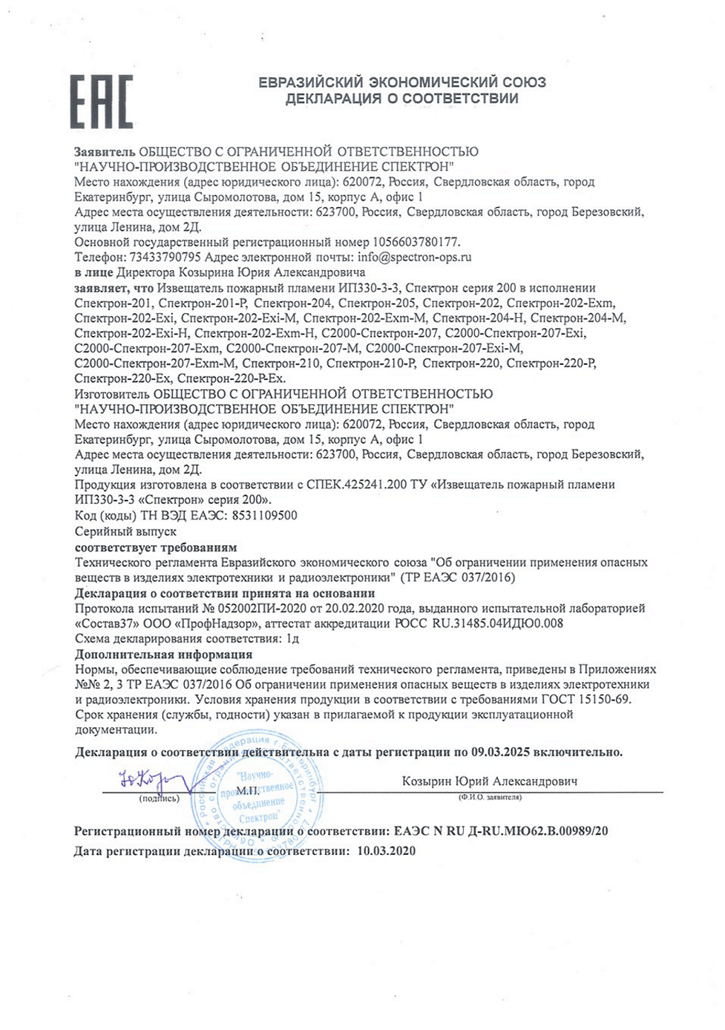 Предназначен для обнаружения возгораний путем регистрации открытого очага пламени и выдачи извещений «Пожар».