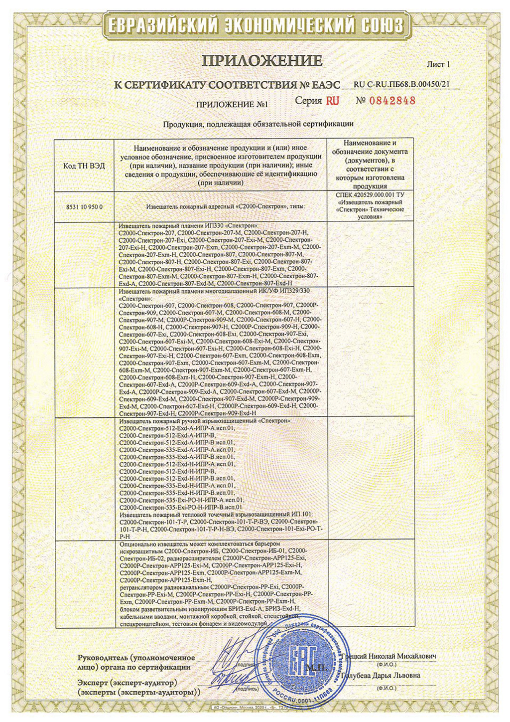 Сертификат пожарной безопасности Извещатель С2000-Спектрон-101-Т-Р-Н BOLID (лист 2)