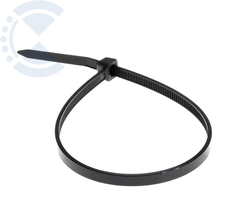 Представляет собой черную нейлоновую полоску с высоким уровнем гибкости размером 200x3,6 мм. Стяжка изготовлена из нейлона-6,6, износостойкого и прочного материала.