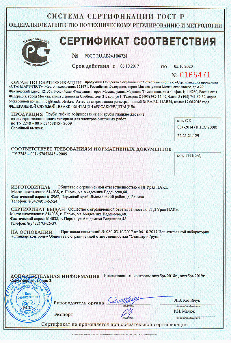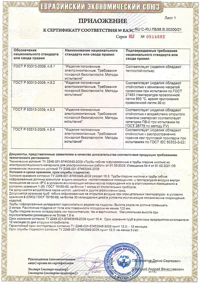 при напряжении не более 1000 В.Трубы обеспечивают степень защиты от воздействий окружающей среды IP55 при условии обеспечения такой же степени защиты другими элементами сети.
