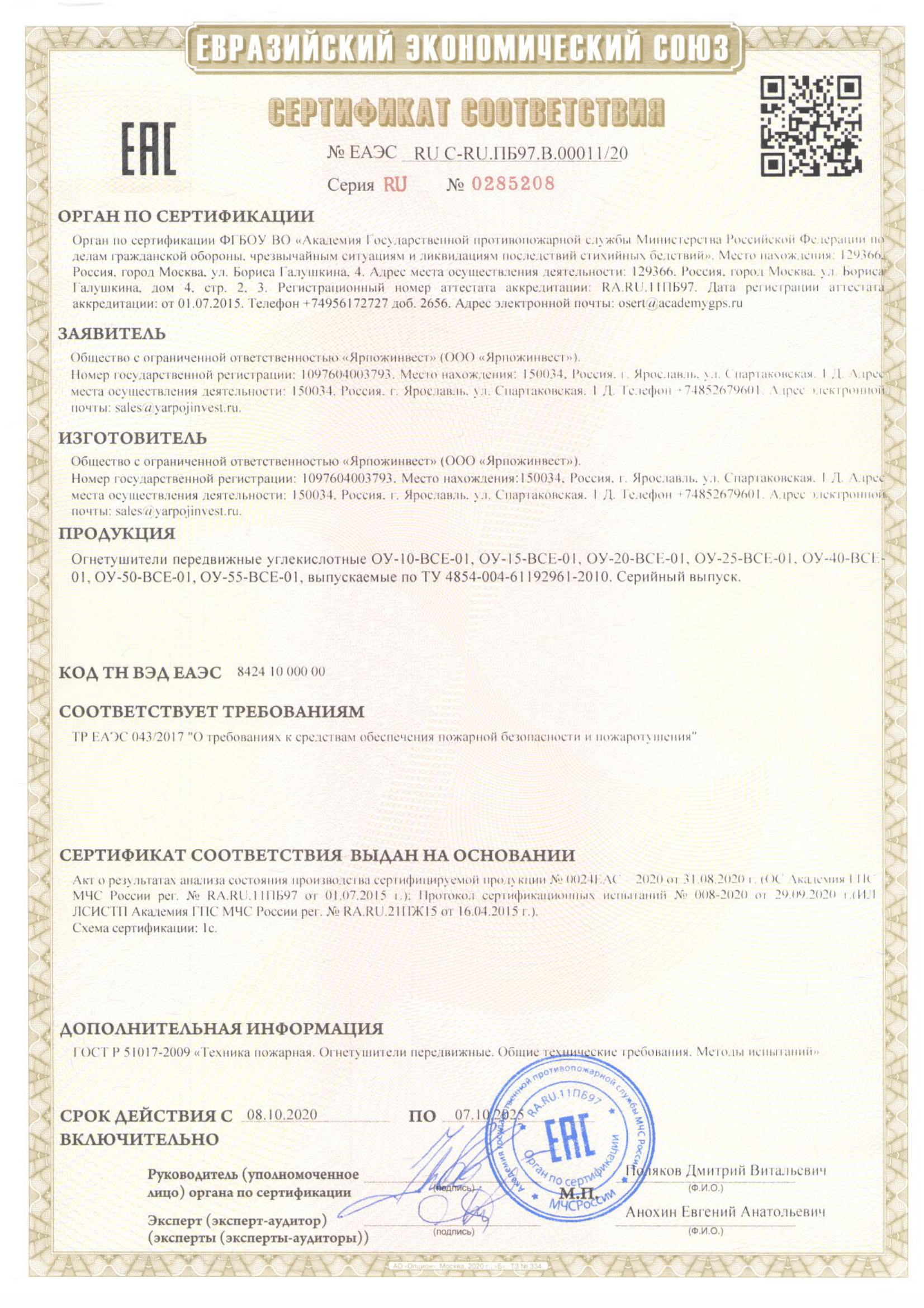 Предназначен для тушения загораний различных веществ, горение которых не может происходить без доступа воздуха, загораний на электрифицированном железнодорожном транспорте, электроустановок, находящихся под напряжением не более 10кВ, загорания в музеях, картинных галереях и архивах, широкое распространение в офисных помещениях при наличии оргтехники, а так же в жилом секторе.