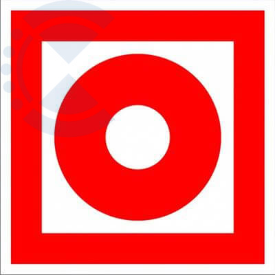 Знак F10 Кнопка 100х100 обозначает место нахождения кнопки включения установок (систем) пожарной автоматики. Знак изготовлен из самоклеящейся пленки ПВХ размером 100*100 мм.