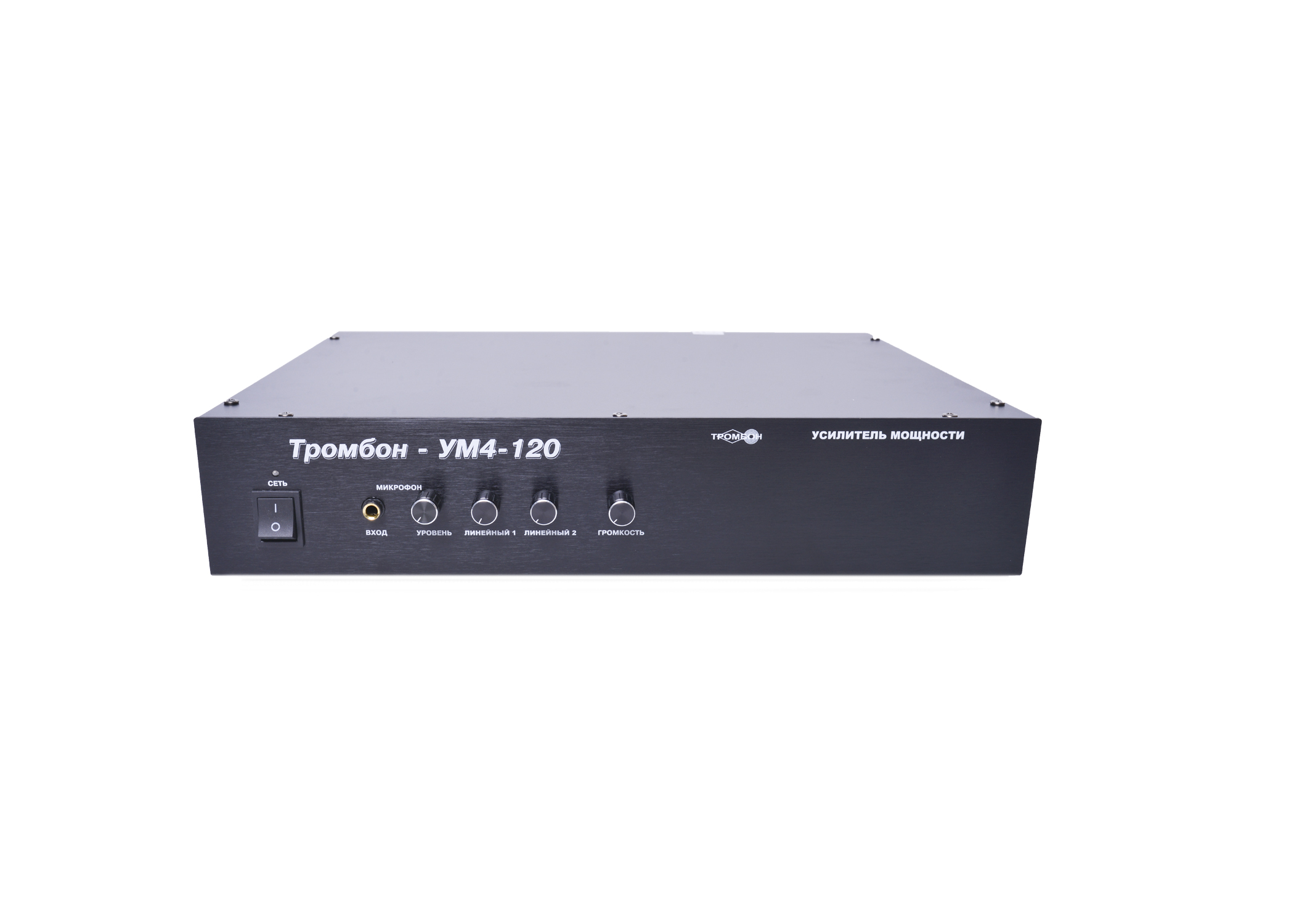 Усилитель средней мощности; питание от сети - ~220В; мощность ном/пик 120/160; входов - 4; выходное напряжение 30, 100, 120 В; частоты - 100 - 20000 Гц; габариты - 438 х 285 х 88 / 2U мм; вес 7,5 кг. В качестве источника резервного питания рекомендуется блок «Тромбон БП-500-07»