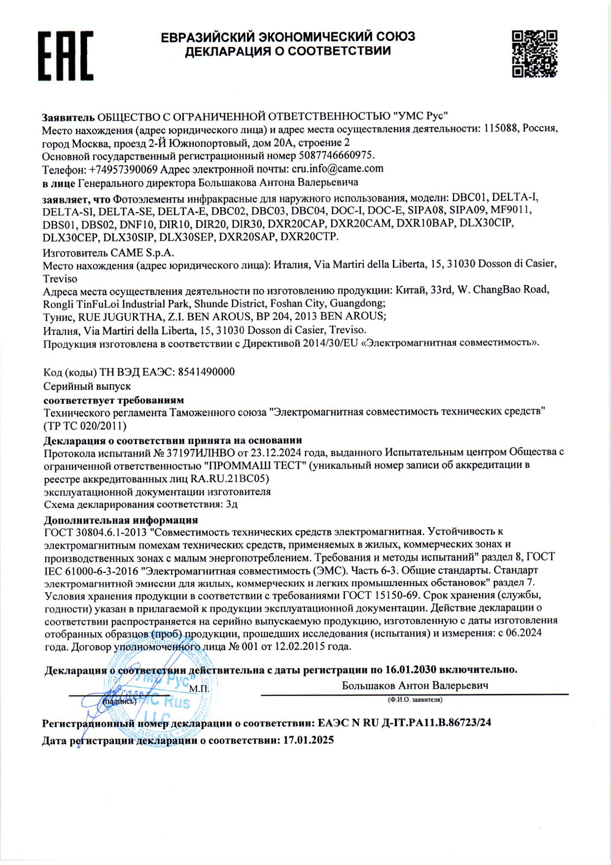 Фотоэлементы 001DIR10 передатчик, приемник/накладные, дальность 10 м CAME в Перми