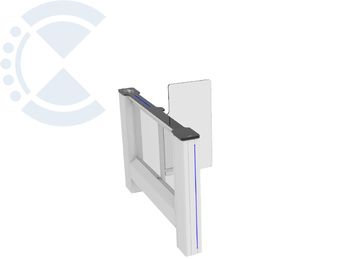 Боковой модуль распашного турникета SWING GATE SWG90M, оснащенный платой управления и светодиодными указателями прохода и направления. Корпус - нержавеющая сталь. Сервопозиционный электропривод створки с определением препятствий и автоматической разблокировкой при отключении электроэнергии. Створка из 10 мм закаленного стекла. Ширина прохода 900 мм. Высота створки 1200 мм. Время открытия - 2.2 сек.