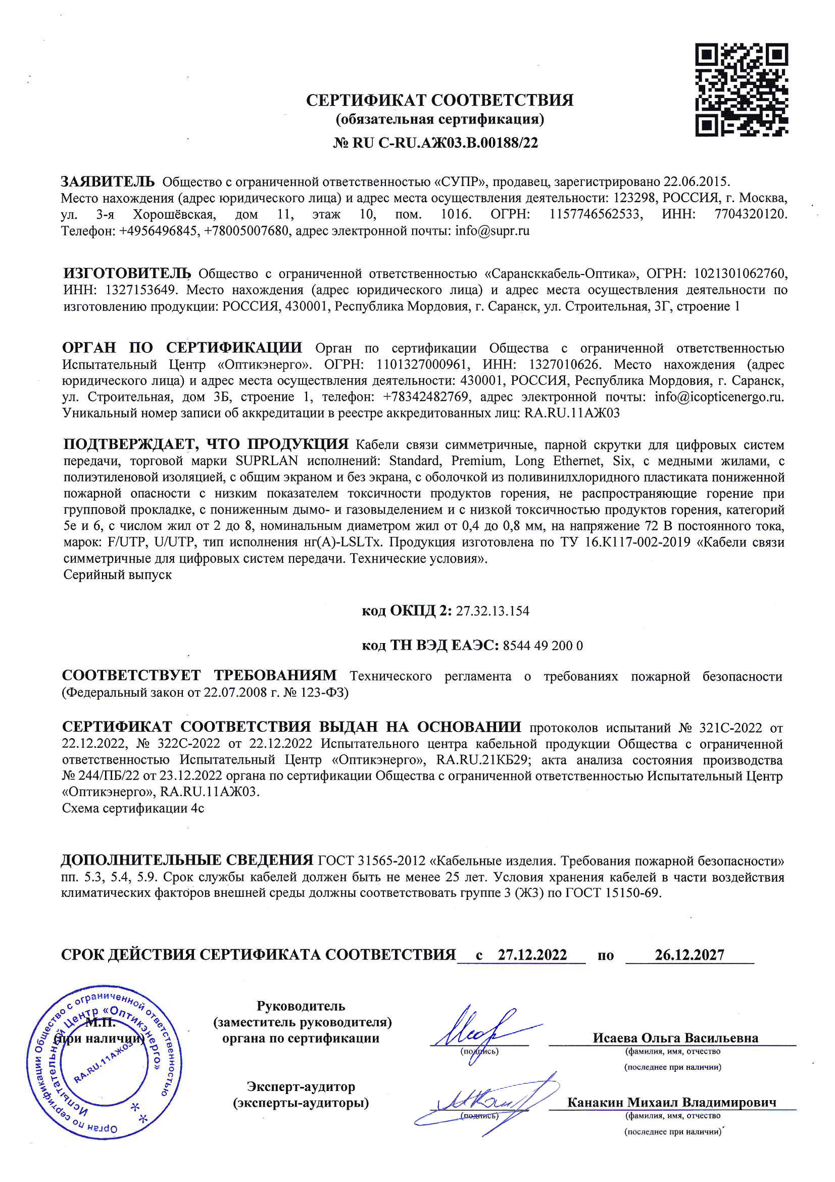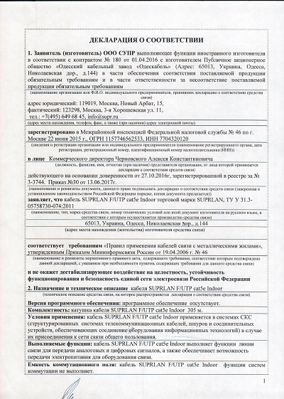 Кабель симметричный неэкранированный UTP; 4х2хAWG24; CCA (алюминий, плакированный медью). UTP 4PR 24AWG CAT5e CCA предназначен для внутренней прокладки. Кабель состоит из 4 пар витых жил, оболочка из ПВХ. Кабель используется для установки внутри помещений. UTP 4PR 24AWG CAT5e CCA подходит для небольших сетей, офисов и жилых домов. Сигнал по кабелю передается в высоком качестве на дальние расстояния. Бухта кабеля 305 м.