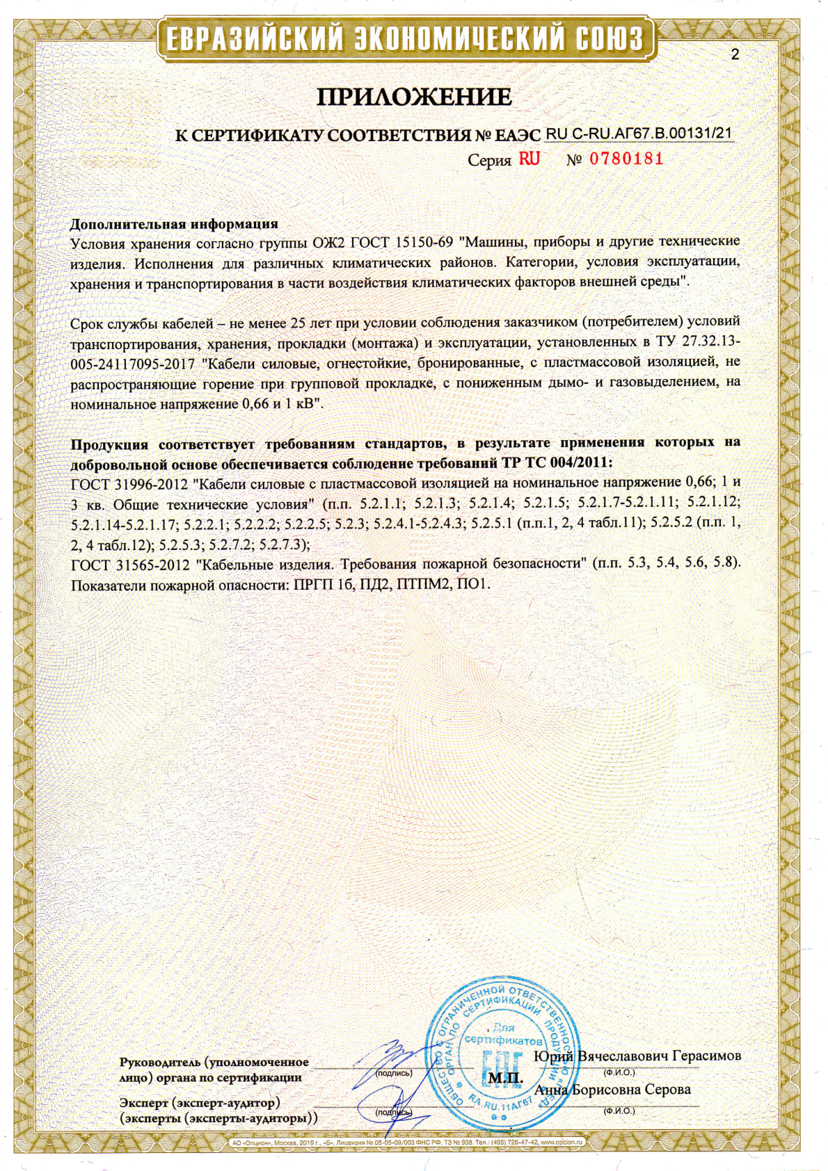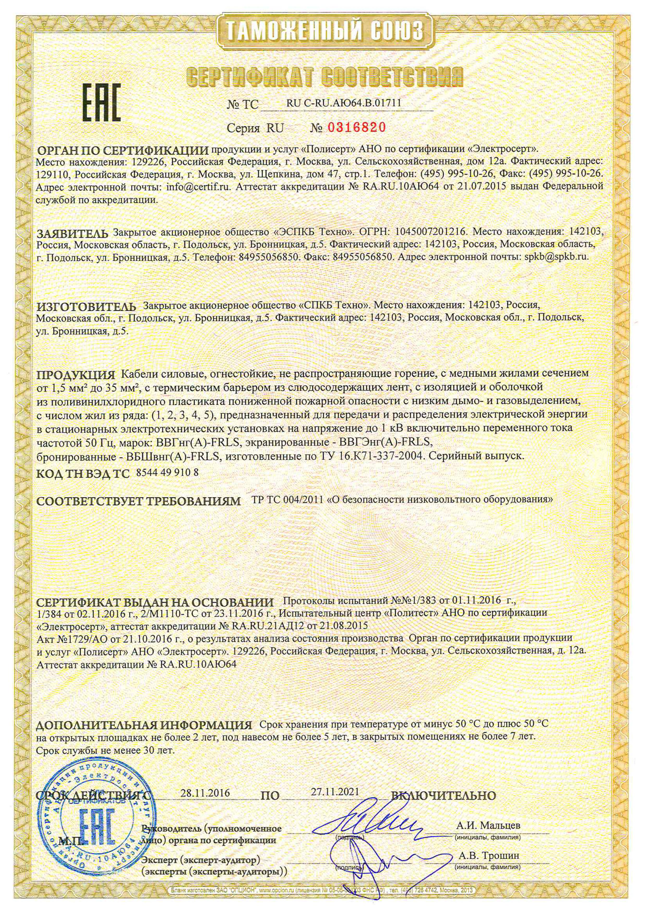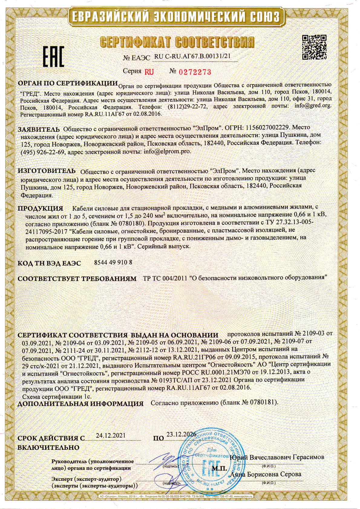 Кабель силовой огнестойкий не распространяющий горение 3х2,5 мм², с низким дымо и газовыделением, бухта (100 метров) (оранжевый)