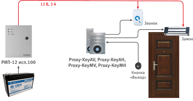 РИП-12 исп.100: питание устройств номинальным напряжением 12 В, выходной ток 3 А